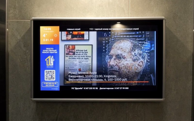 В лифтах и холлах домов были установлены «Умные экраны» — цифровые панели, которые ежедневно видят большинство жителей. Управляющая компания разместила на них видеоролик с QR-кодом для скачивания мобильного приложения. Именно через него жители отправляют показания счётчиков и получают уведомления о плановых отключениях воды, тепла или электроэнергии.