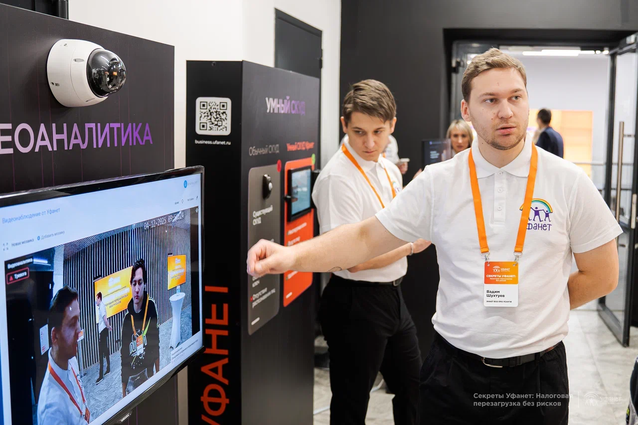 Предприниматели задавали вопросы, делились своими ситуациями и получали разъяснения от экспертов. А параллельно Уфанет представил и собственные сервисы для бизнеса — решения, которые могут упростить работу, снять часть операционных нагрузок и повысить эффективность. Все это было представлено на интерактивных стендах в холле. Гости конференции могли вживую посмотреть, как работают видеонаблюдение, видеоаналитика, умный СКУД, «Умные экраны» в ЖК, а также комплекс услуг 1С и IT-сопровождение Уфанет.
