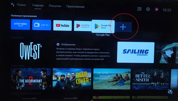 Для добавления приложения в раздел быстрого доступа, находясь на главном экране листаем вправо до появления значка плюса, нажимаем на него.