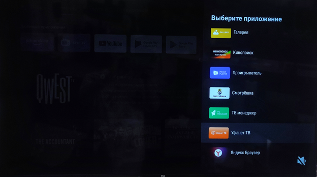 В появившемся списке приложений находим “Уфанет ТВ” и выбираем его.