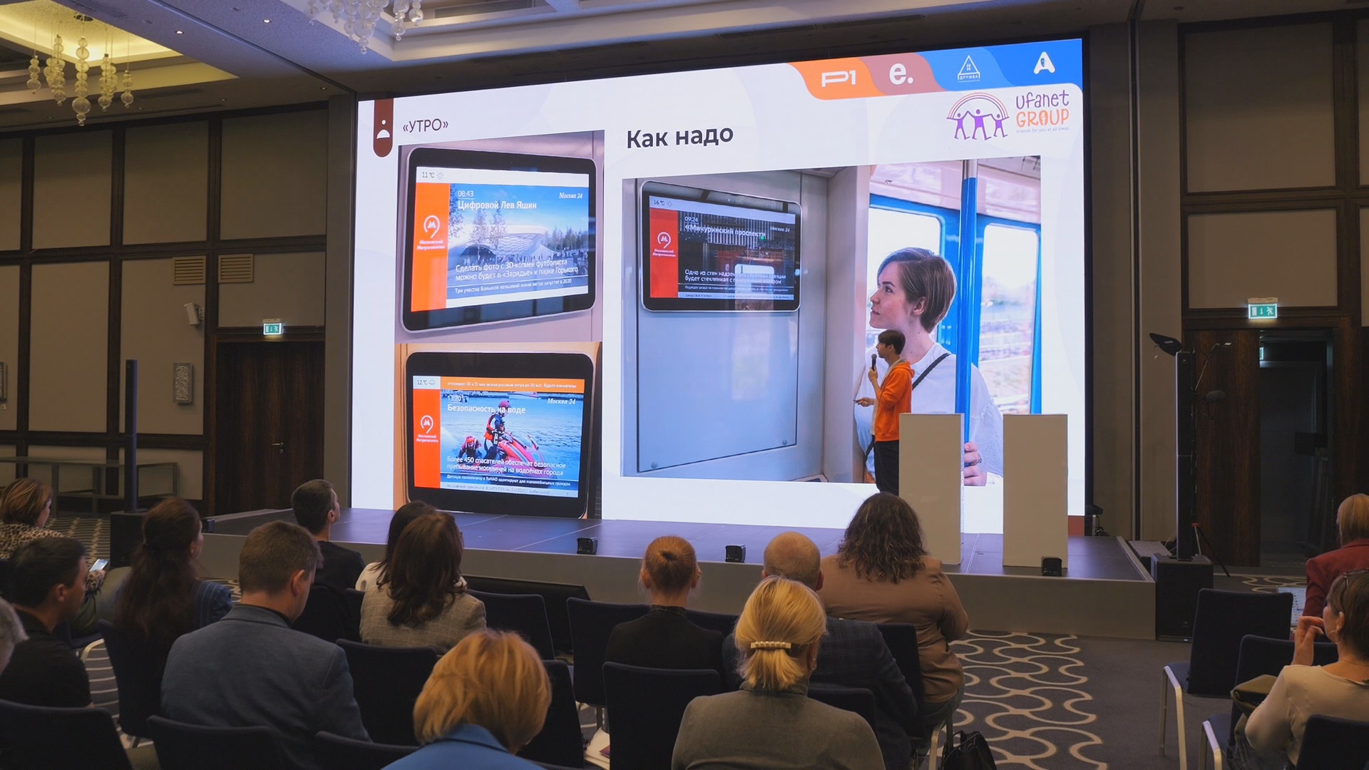 «Мы устанавливаем экраны в холлах и лифтах жилых домов, чтобы жители могли получать важную и полезную информацию — без лишней рекламы. Это ещё одна точка контакта, где можно сообщать новости дома или района».
